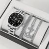 3pcs Set Fashion Mens Watches Luxury Men Sports Gold Stainless Steel Quartz Wrist Watch Male Sports Bracelet Necklace Sets