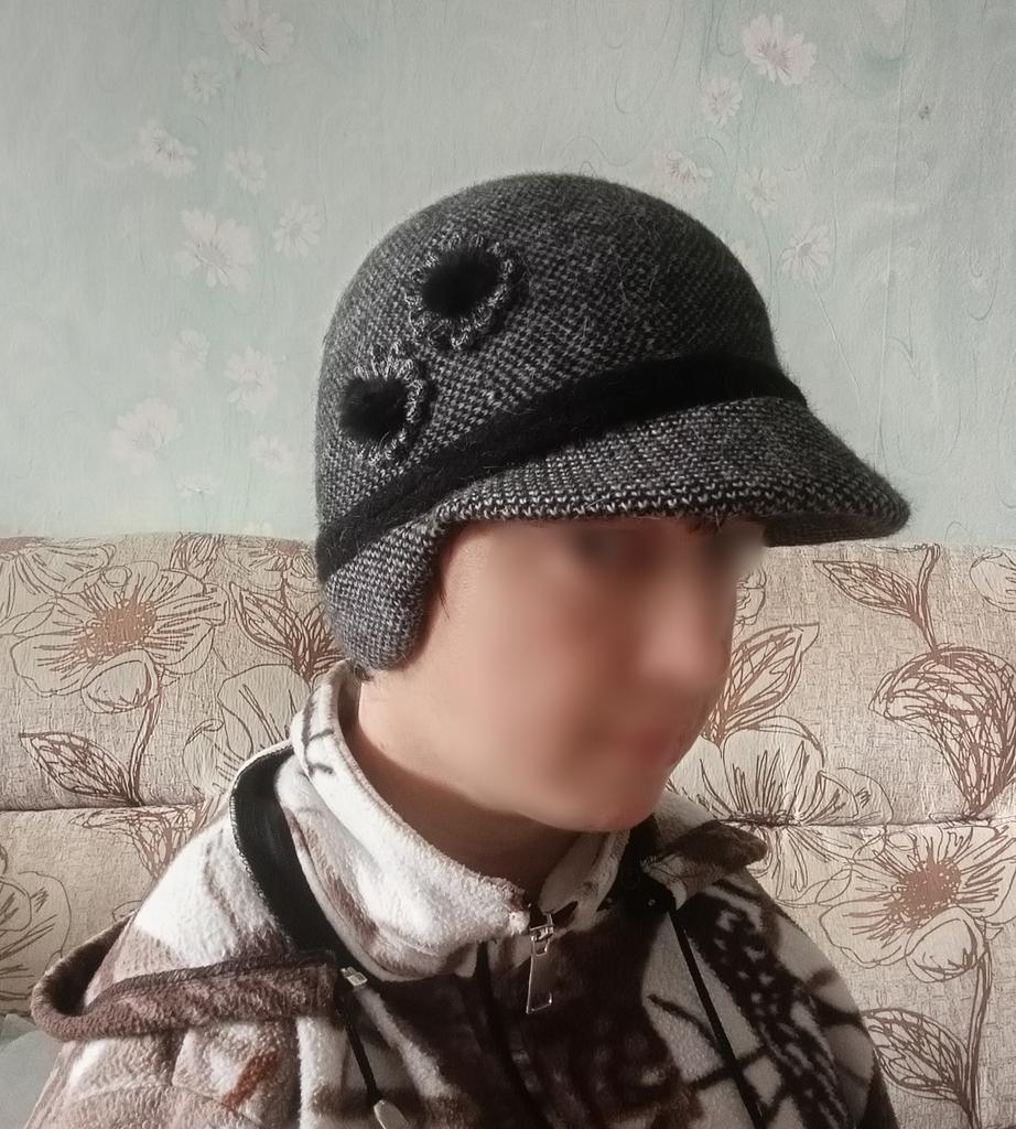 Warm hat for winter, ears are closed, comfortable. For head circumference 58 cm freely.