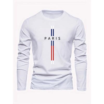 Men's Comfortable Sports and Leisure Paris Letter Pattern Printed Round Neck Long Sleeved T-shirt Top