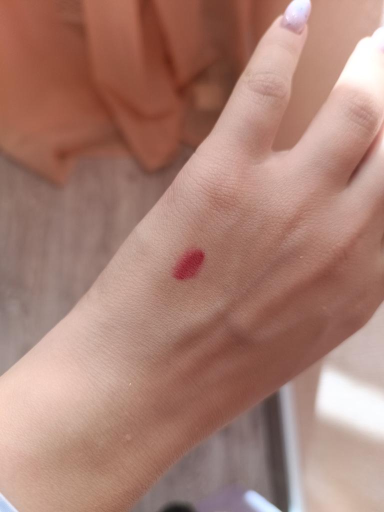 Colour is a pretty good match to what is shown, an interesting packaging compared to other lip tints I've tried (the applicator is in the middle and product is a solid balm around the edges). comfortable lip product, doesn't dry out my dry lips and is lightly hydrating too.