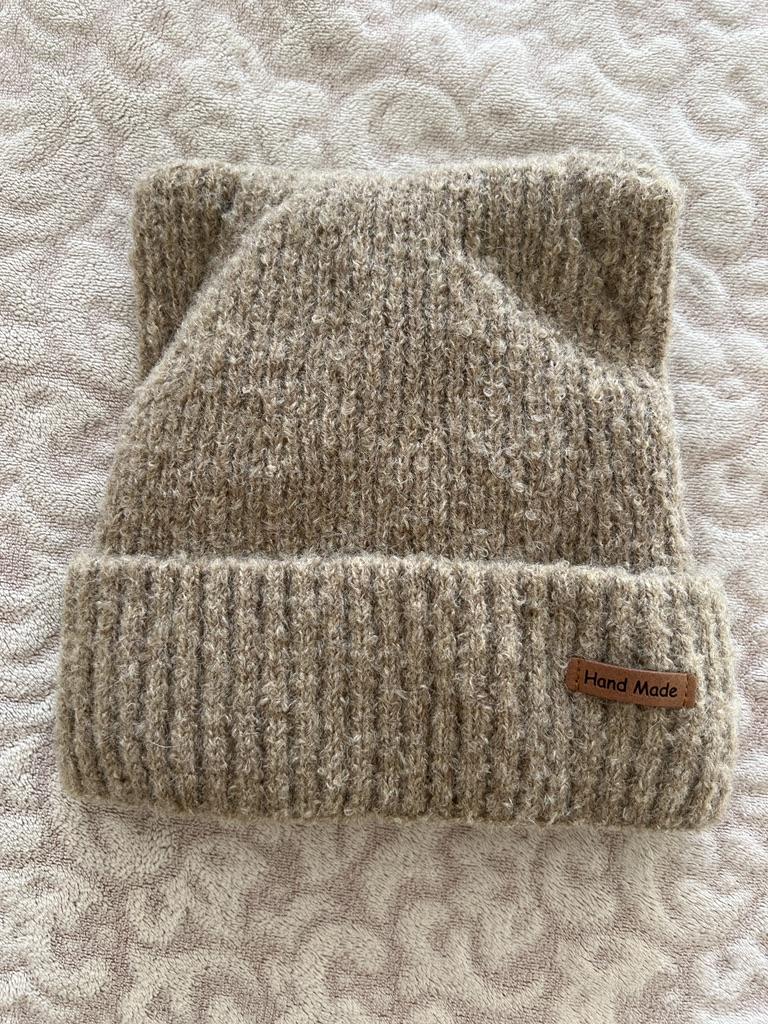 The gray color of the hat is darker. The hat is interesting, warm. Lifts the mood