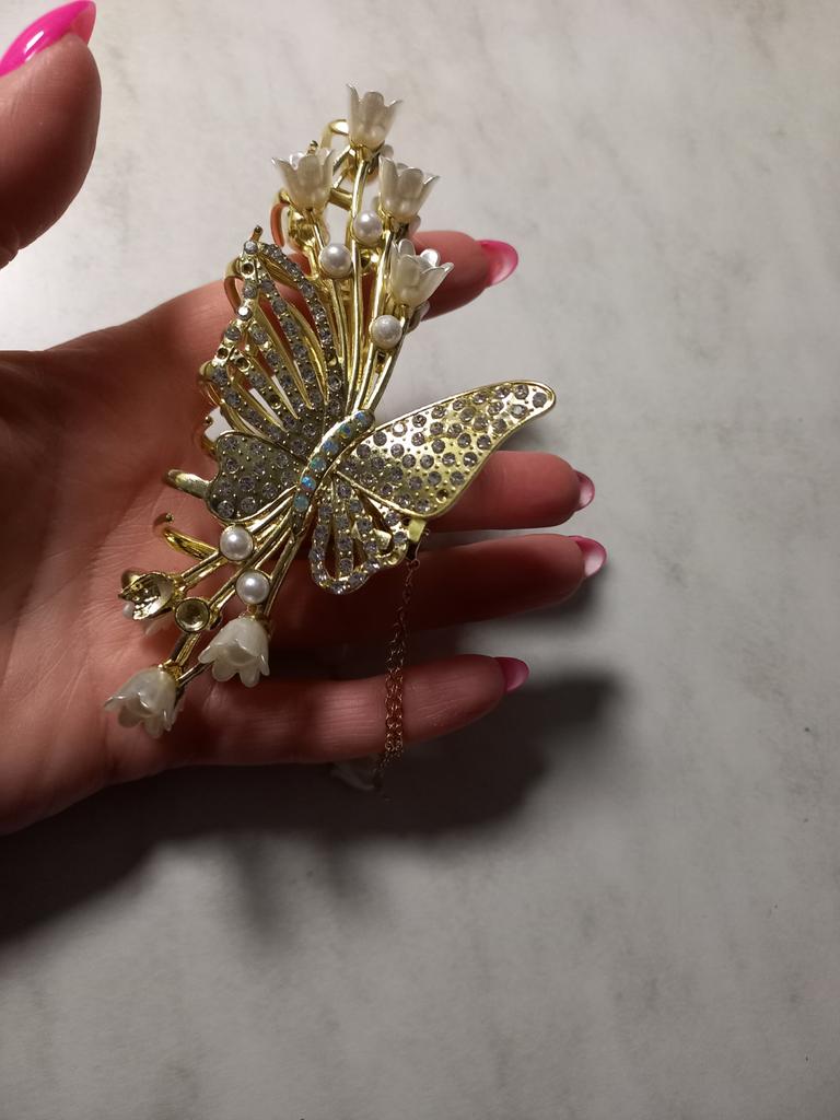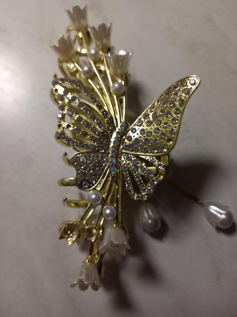 1pc Girl's Cool Flower Butterfly Rhinestone Faux Pearl Tassel High-quality Large Hair Clip Fairy Hair Accessories Shark Girls Hairpin Korean Claw Clip