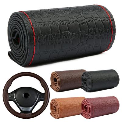 Genuine Leather Car Steering Wheel Cover Fashion Embossed Cowhide Steering Wheel Wrap Braid With Needle Thread 38cm Universal