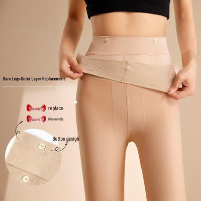 Double-Layer Nude-Feel Button-Up Fleece-Lined Leggings - Detachable, Thick, Warm Tights for Autumn/Winter