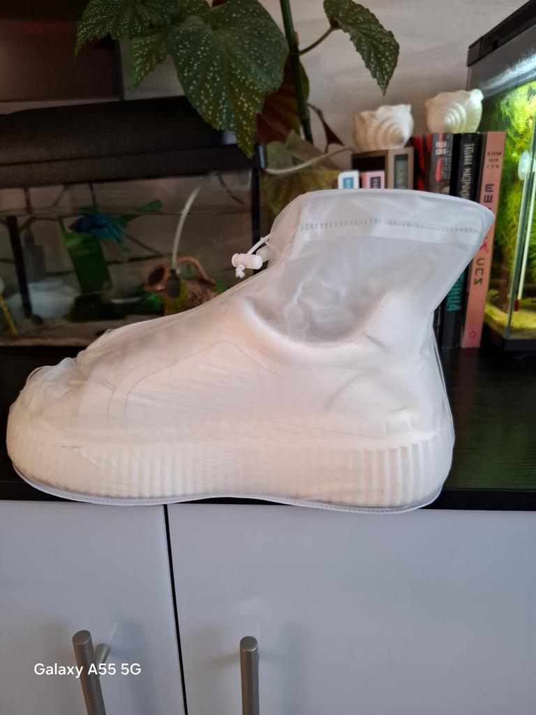 It's still unclear how this footwear will behave in the rain. It looks cool, you can put it on regular shoes. To avoid problems when putting it on, it's better to place the footwear first, and then put on the shoes.