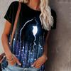 Women's Summer Casual Crewneck 3D Print Moonlight Cat Pattern Breathable O Neck Short Sleeve Oversized T-shirt Summer