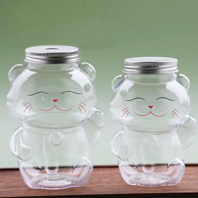 Cute Lucky Cat Water Bottle Transparent Juice Drink Bottle Milk Tea Bottle Coffee Juice Mouth Able Drinking Cup