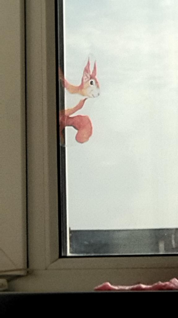 Stuck it on the window. Now I have my own squirrel. When I drink beer. Thank you very much.