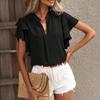 Women's Solid Color V-neck Casual Double Layer Sleeves Solid Color Shirt Top