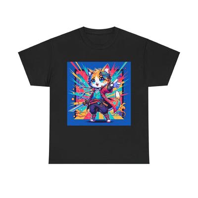 Unisex Adult T Shirt Chibi Cat Anime Art Heroic Pose