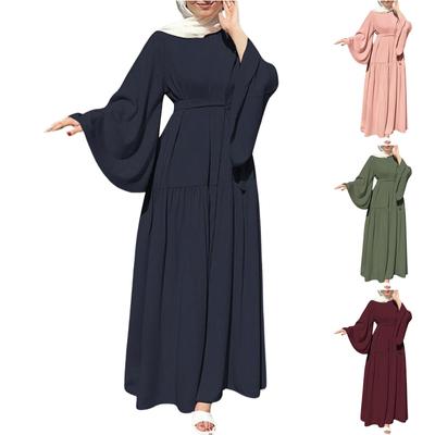Muslim Women's Vacation Casual Flared Sleeves With Belt Hem Long Dresses