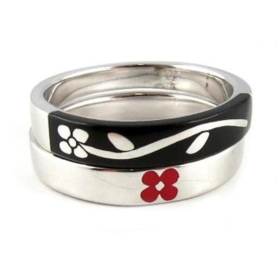 Silver Black Red 'Flower' Plural Ring