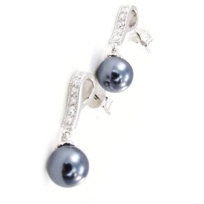 [G9014] - Gray 'Pearl Beauty' Silver Earrings