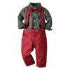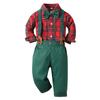 Children's Plaid Shirt and Pants Two-piece Set Boys' Bow Tie Lapel Long Sleeved Plaid Shirt
