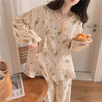 Women Pajamas Autumn and Winter Long-Sleeved Trousers Student Homewear Two-Piece Round Neck Floral Wearable Pajamas
