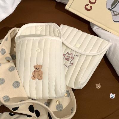 Cute Cartoon Embroidered Bows Menstrual Pouch Storage Bag Women's Accessories Storage Bag Travel Cosmetic Organizer