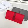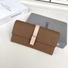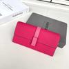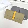 New Genuine Leather Women's Wallet Top Layer Cowhide Lychee Pattern Drawstring Contrasting Color Long Three Fold Bag