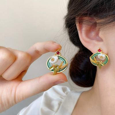 Medieval Oil Painting Style Fashion Design Earrings Women'S Retro High-End Sense Fashion Dripping Earrings Light Luxury Temperament Ear Jewelry