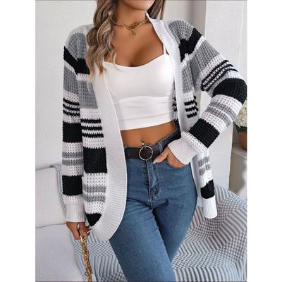 Casual Trend Versatile Autumn and Winter Long-sleeved Colorblocking Loose Casual Women's Cardigan Sweater Jacket