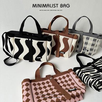 Fashion Stripes Knitted Handbag Trendy Handmade Women Girls Shoulder Bag Reusable Leisure Tote Korean Students Box Lunch Bags