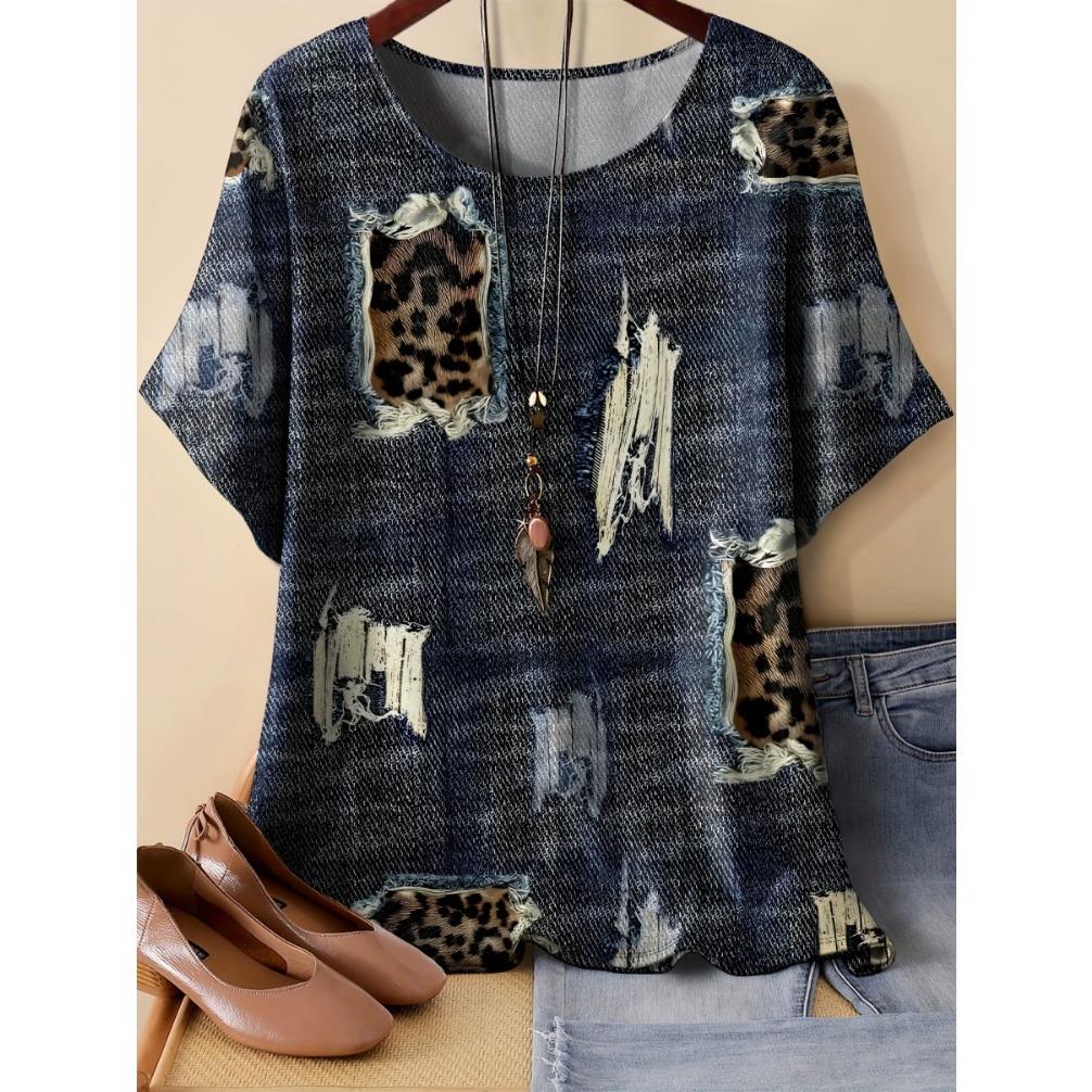 Vintage O Neck Short Sleeve Loose Plus Size 3d Printed T-shirt Women Tops