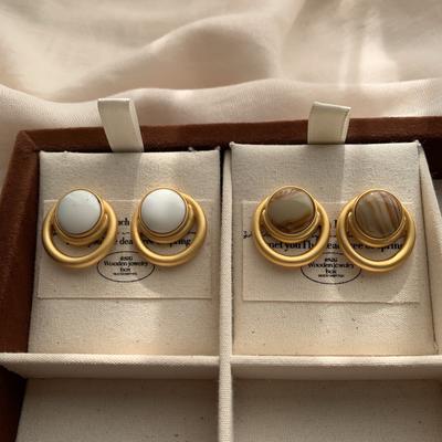Native Series Wood Grain Stone Simple Circle Stud Earrings Women'S Design High-End Season Earrings