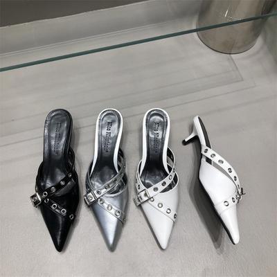 2025 New Shoes for Women Buckle Strap Heels Designer Half Slippers Pointed Toe Ladies Pumps Women's Heels Wedding High Heeled