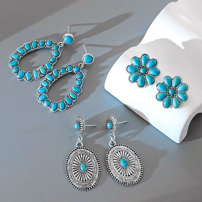 European & American Bohemian Floral Teardrop Turquoise Imitation Earrings for Women