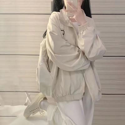 Women's Harajuku Minimalist Jacket Student Baseball Style Loose Casual Versatile Trendy Windbreaker Jacket Top for Spring and Autumn