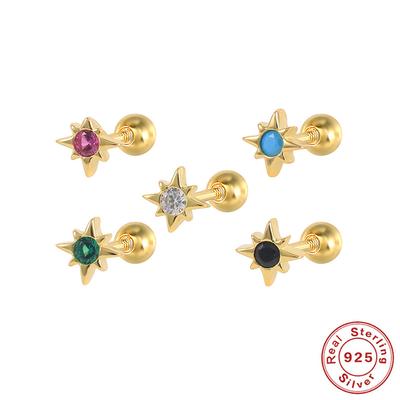 Four-Claw Crystal Gemstone Puncture Mix And Match Earrings Cartilage Puncture Four-Pointed Star Earbone Nail