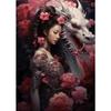 Japanese Dragon Geisha Art Poster Canvas Wall Art Paintings Elegance of Geisha Pictures Wall Art Mural for Home Room Decoration