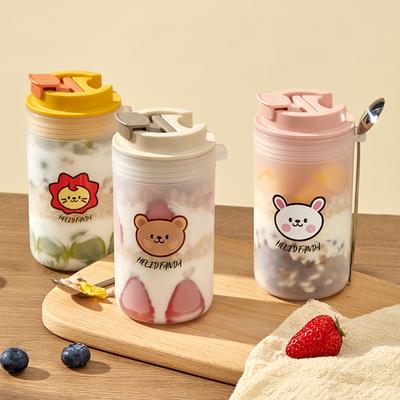 Portable Breakfast Oat Cup With 316 Stainless Steel Spoon Plastic Milk Yogurt Oatmeal Jar Leak Proof Food Container