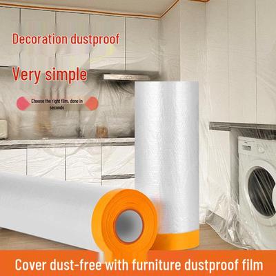 Disposable Cuttable Dust Film Self-adhesive Dustproof Film Car Paint Masking Tape For Furniture Dust Protection-12m Length