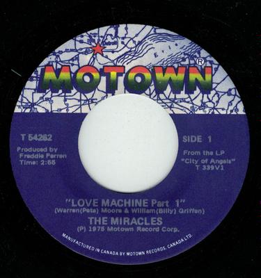 7inch Record MIRACLES - Love Machine T54262 Motown 1975 Canada Soul/Funk Used