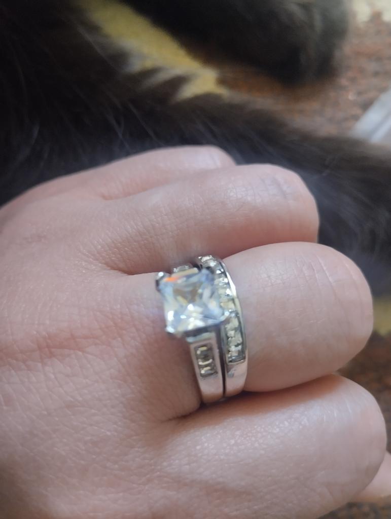 Sanjie Women's Square Zircon Couple Ring Set - Elegant Diamond Design