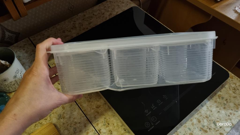 Neat, compact containers. I freeze soup in them in portions. In volume, just for 1 portion. The plastic is good, food-grade, absolutely odorless.