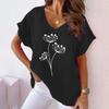 Summer Printing V-neck Short Sleeve Women T-shirt Plus Size Fashion Elegant Loose Office Shirt Casual Simple Fashion Elegant Ladies Basic Top Clothing
