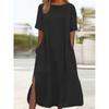 Casual Loose Summer Maxi Dress with Short Sleeves and Pockets