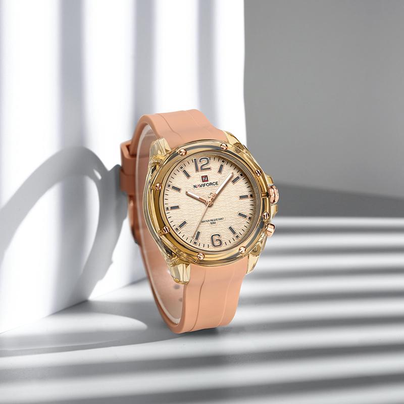 Naviforce Women's Simple Watch Quartz Movement Luminous Pointer Waterproof 50m Silicone Strap Lightweight Women's Girls Casual Fashion Watch NF6103