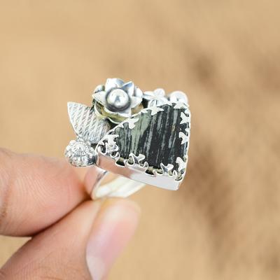 Sterling Silver Kambaba Jasper Stone Handmade Mother Flower Promise Ring Jewelry