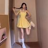 Sweet Petite Yellow Polka Dot Tulip Dress - Spaghetti Strap, Waist-Cinching, Puffy Skirt, Summer Style