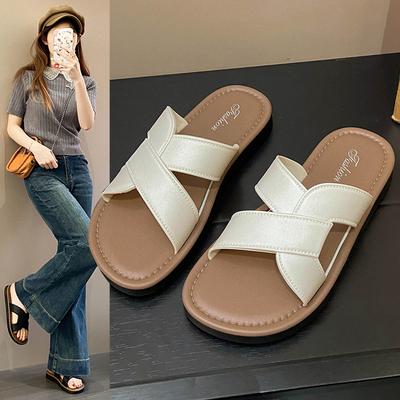 Retro Style Casual Flat-bottomed Slippers Women's Beach Non-slip Sandals Women's Summer Wear New Cross-strapped Slippers