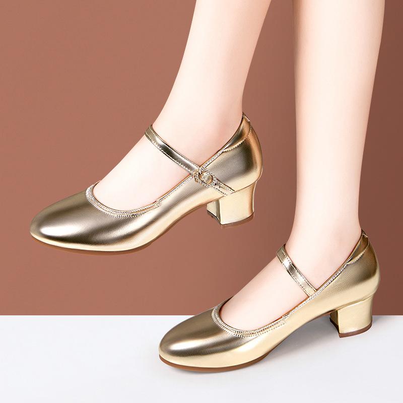3.5cm 5.5cm Breathable Comfortable Shallow Soft Leather Shoes Mary Janes 2025 Spring Med Block Heels Shoes for Dance Office Mom