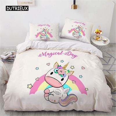 Cartoon Unicorn Design Duvet Cover Set Cute Comforter Cover Bedding Set Bed Linen For Baby Kids Girls Gift Bedroom Decoration
