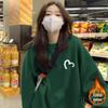 Women's Dark Green Round Neck Pullover Sweatshirt - 2024 Autumn Korean Style, Long Sleeve, Casual Design.
