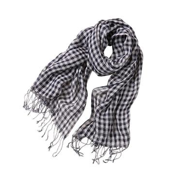 [Dolly Para] Women's Hemp Scarf Linen Muffler Hemp Stole Gingham Check Navy Blue and Pink (Navy Blue)