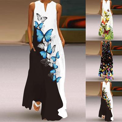 New Spring Fashion Printed Sexy Plus Size Long Dress Women Elegant Sleeveless Loose Summer Casual Dresses Women A Line Beach Vacation Maxi Dress 26411