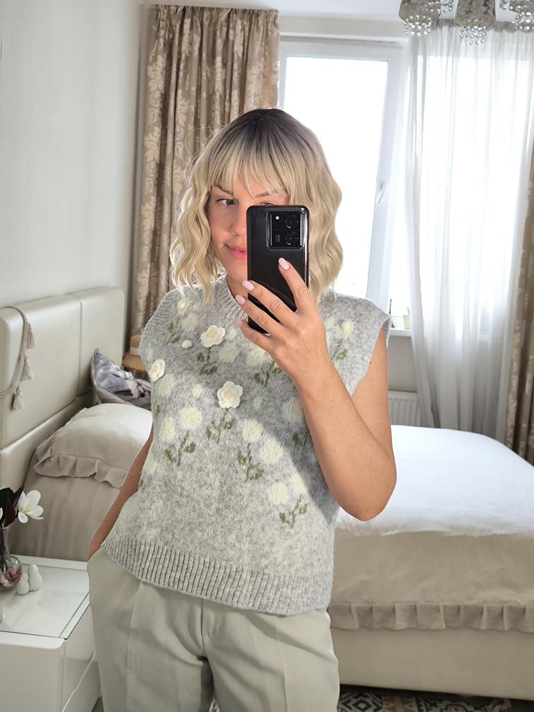 Dimanaf 2025 Autumn Women Sleeveless Vest Sweaters Style Embroidery Printing Knitting Casual Loose Short Sweater