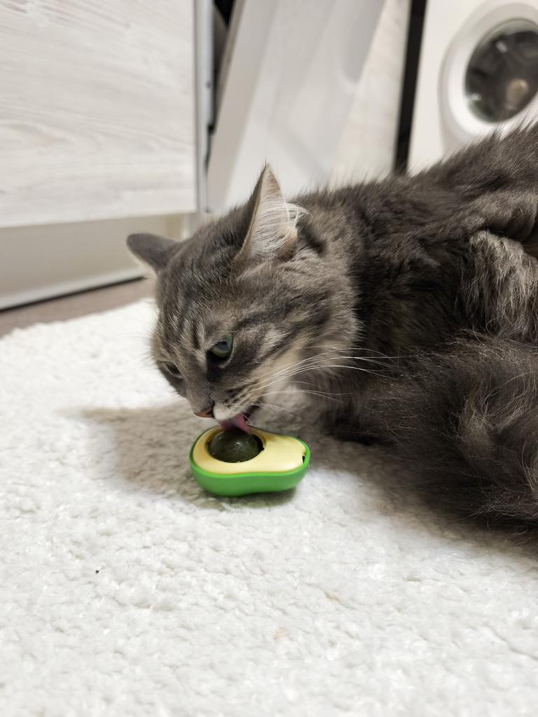 Teeth cleaning and self-entertainment for cats - an excellent solution for keeping a cat active and healthy. The rotating design and durability allow the cat to chew, play, and enjoy for a long time. The catnip inside the toy stimulates interest and encourages interaction, even in more passive cats. Furthermore, chewing helps with natural teeth grinding and cleaning the oral cavity.. The avocado-shaped toy adds a cute and amusing touch, and its size (6*4.6 cm) is well-suited to the mouth size of most cats. It is especially suitable for a household with a single cat who needs entertainment even when there is no one to play with them.. A successful combination of health and fun.