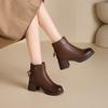 Coarse Heel Versatile Short Boots Women's 2025 New Boots Autumn and Winter Martin Boots Leather Round Head High Heels Women's Shoes